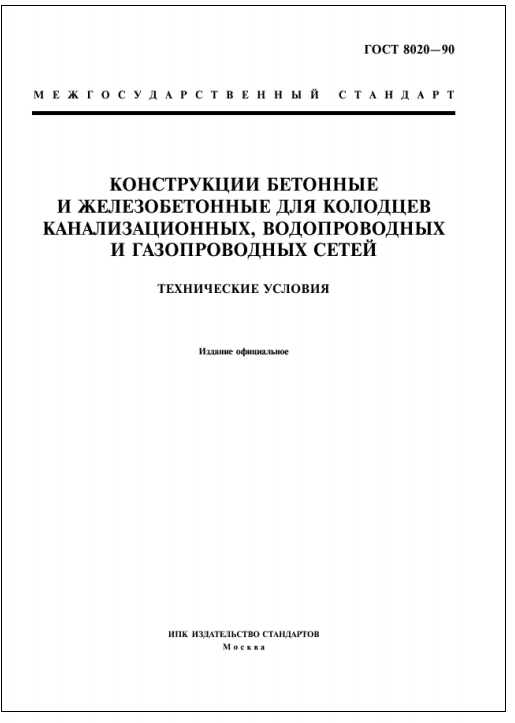ГОСТ 8020-90. Конструкции бетонные и железобетонные для колодцев канализационных, водопроводных и газопроводных сетей
