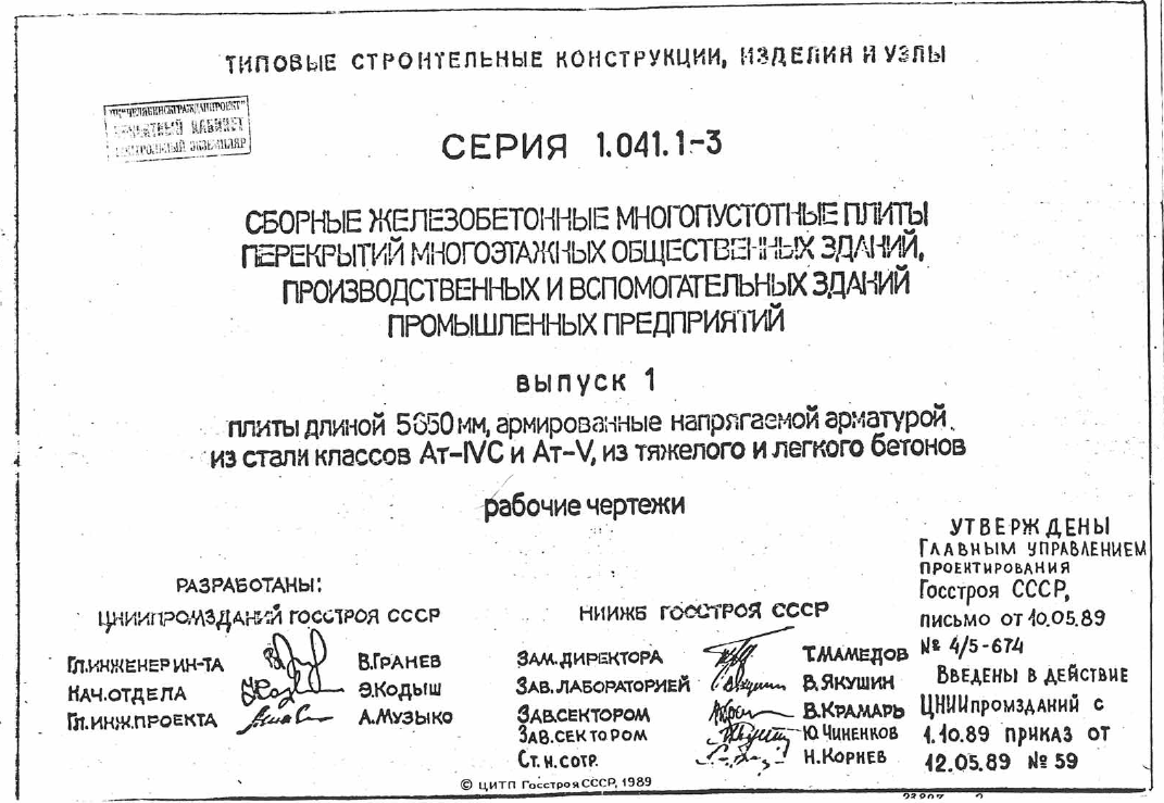 Серия 1.041.1-3. Сборные железобетонные многопустотные плиты перекрытия многоэтажных общественных зданий производственных и вспомогательных зданий промышленных предприятий.