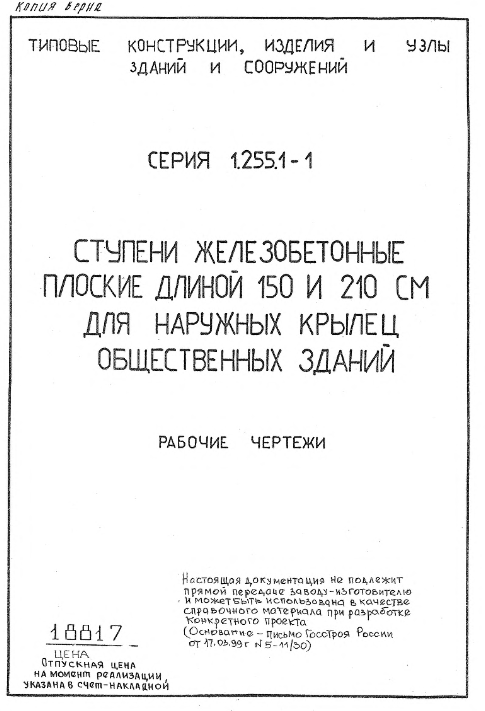 Скачать Серия 1.255.1-1. Ступени железобетонные плоские длиной 150 и 210 см для наружных крылец общественных зданий, Вы можете на нашем сайте.