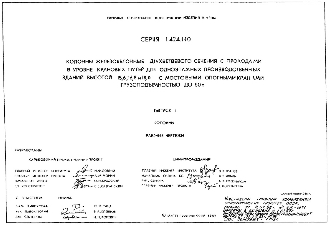 Скачать Серию 1.424.1-10. Колонны железобетонные двухветвевого сечения с проходами в уровне крановых путей для одноэтажных производственных зданий высотой 15.6. 16.8. 18м с мостовыми опорными кранами грузоподъемностью до 50 т, Вы можете на нашем сайте.